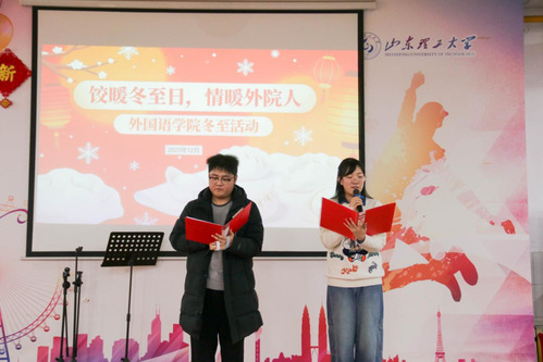 除动手实践外,活动还设置“冬至知识挑战赛”趣味环节。比赛分为“快问快答”与“谜语接龙”两轮,题目既涵盖冬至历史习俗,又结合外语专业特色,融知识性与趣味性于一体。同学们踊跃参与、对答如流,在轻松互动中深化了对传统文化的认知,也展现出扎实的专业素养。